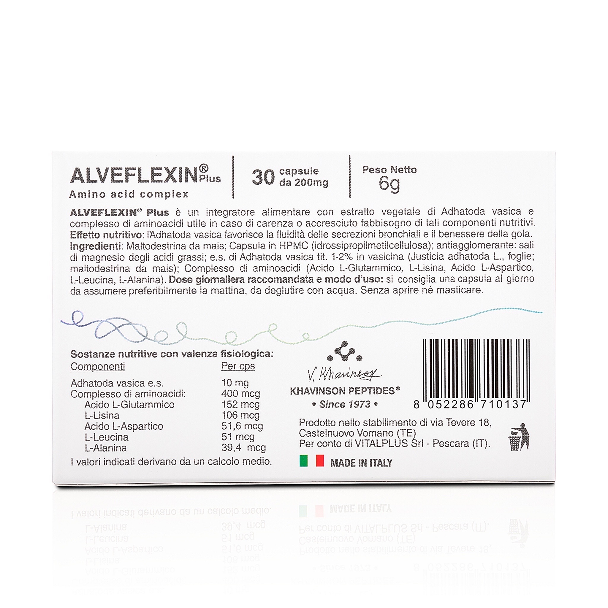Альвефлексин® Плюс (Alveflexin® Plus) — пептидный биорегулятор, используемый в качестве БАД для восстановления функций дыхательной системы, бронхов и легких. Комплекс (пептиды AEDL и KE) нормализует обмен веществ в клетках, помогает при хроническом бронхите, астме, кашле курильщика и легочной недостаточности.