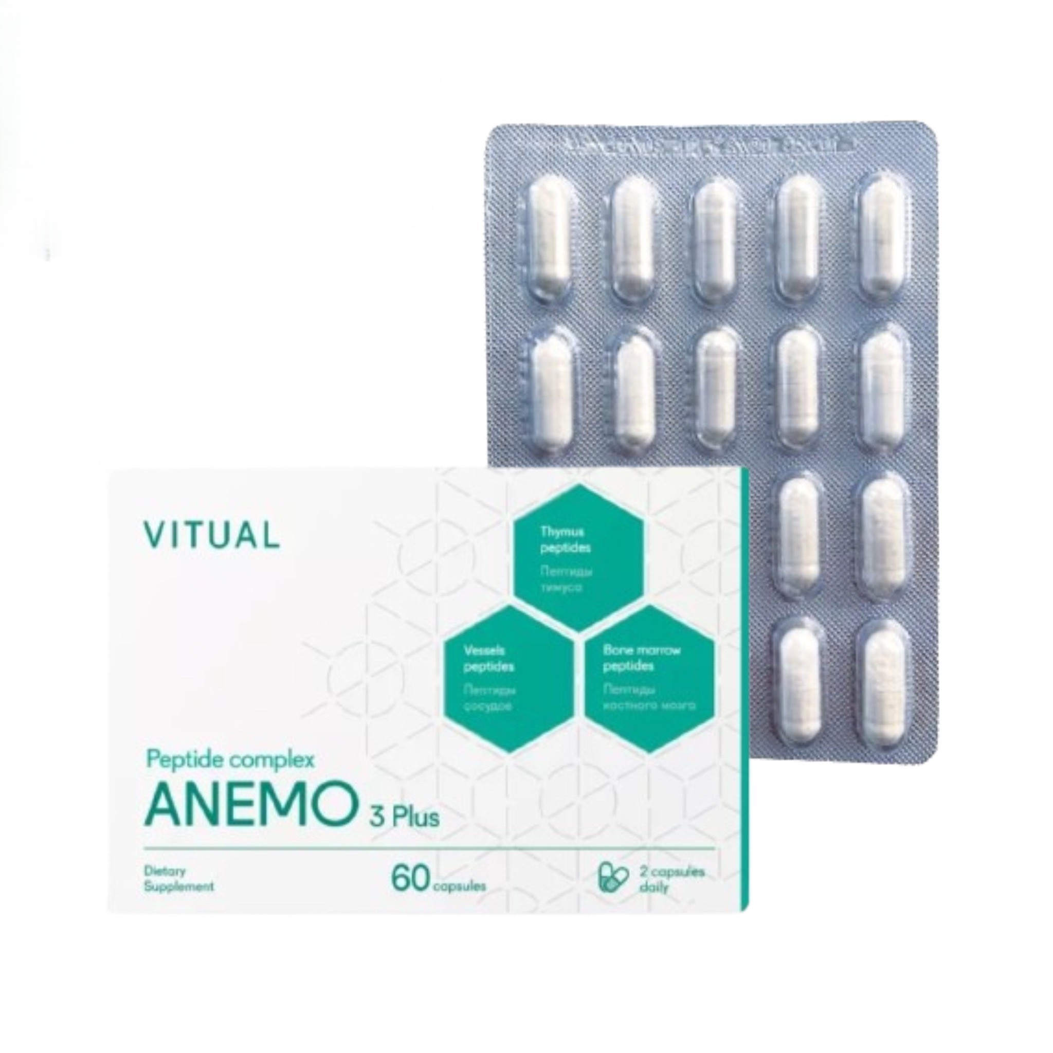 Пептидный комплекс Anemo 3 Plus® (Анемо 3 Плюс) предназначен для улучшения работы кроветворной и иммунной систем. Он содержит натуральные пептиды костного мозга, тимуса (вилочковой железы) и сосудов.