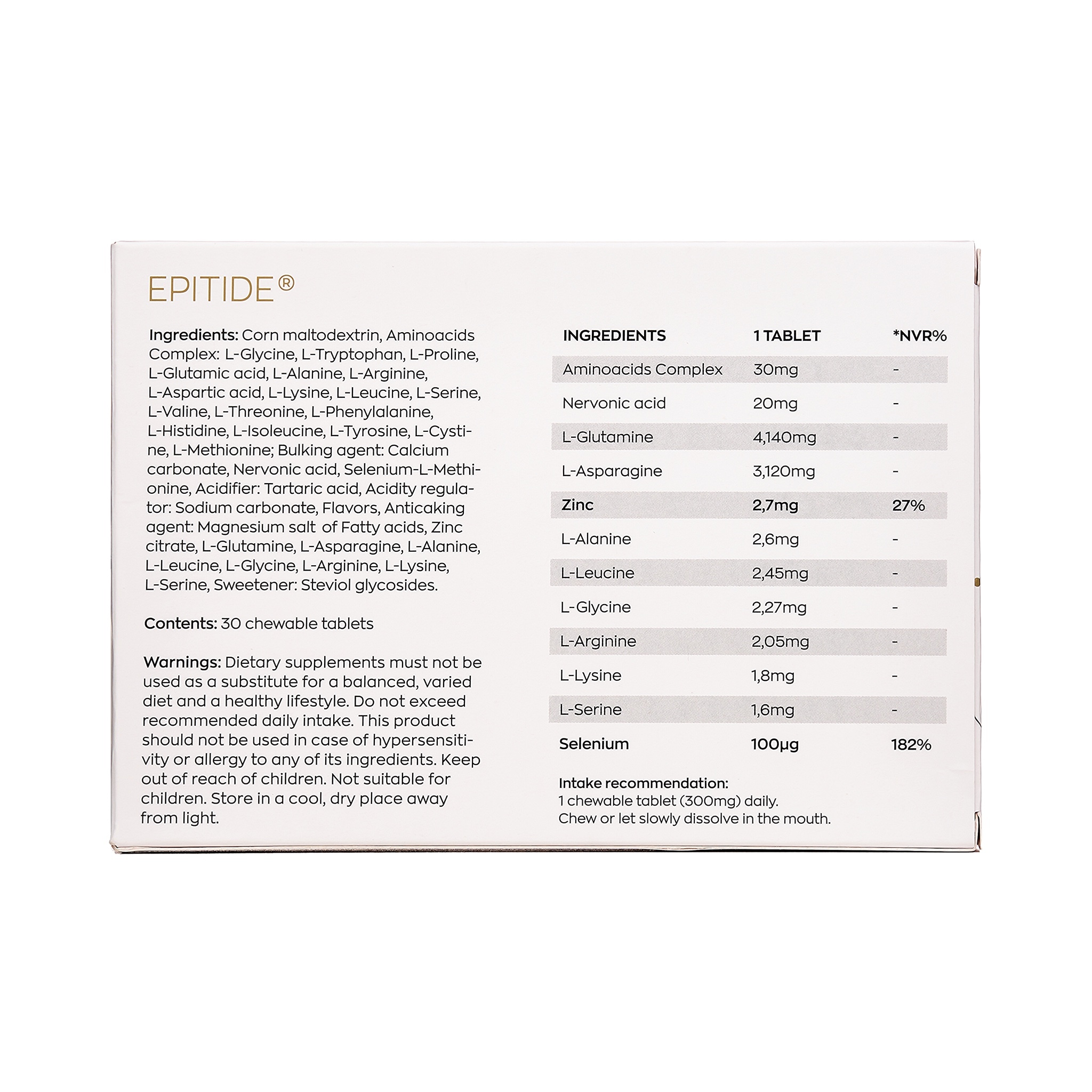 Пептид эпифиза EPITIDE® (Эпитид), содержащий эпиталамин, используется как пищевая добавка для общего укрепления здоровья, поддержания долголетия и борьбы с возрастными изменениями организма. Ультракороткий пептид эпифиза Эпиталамин® удлиняет теломеры, омолаживает организм, восстанавливает гормональный баланс, укрепляет иммунитет. Селен укрепляет иммунную систему, улучшает работу мозга. Цинк повышает прочность клеточных стенок, тем самым препятствует проникновению вирусов. В совокупности эти компоненты стимулируют выработку антител и оказывают противовирусный эффект, антиоксидантную защиту.