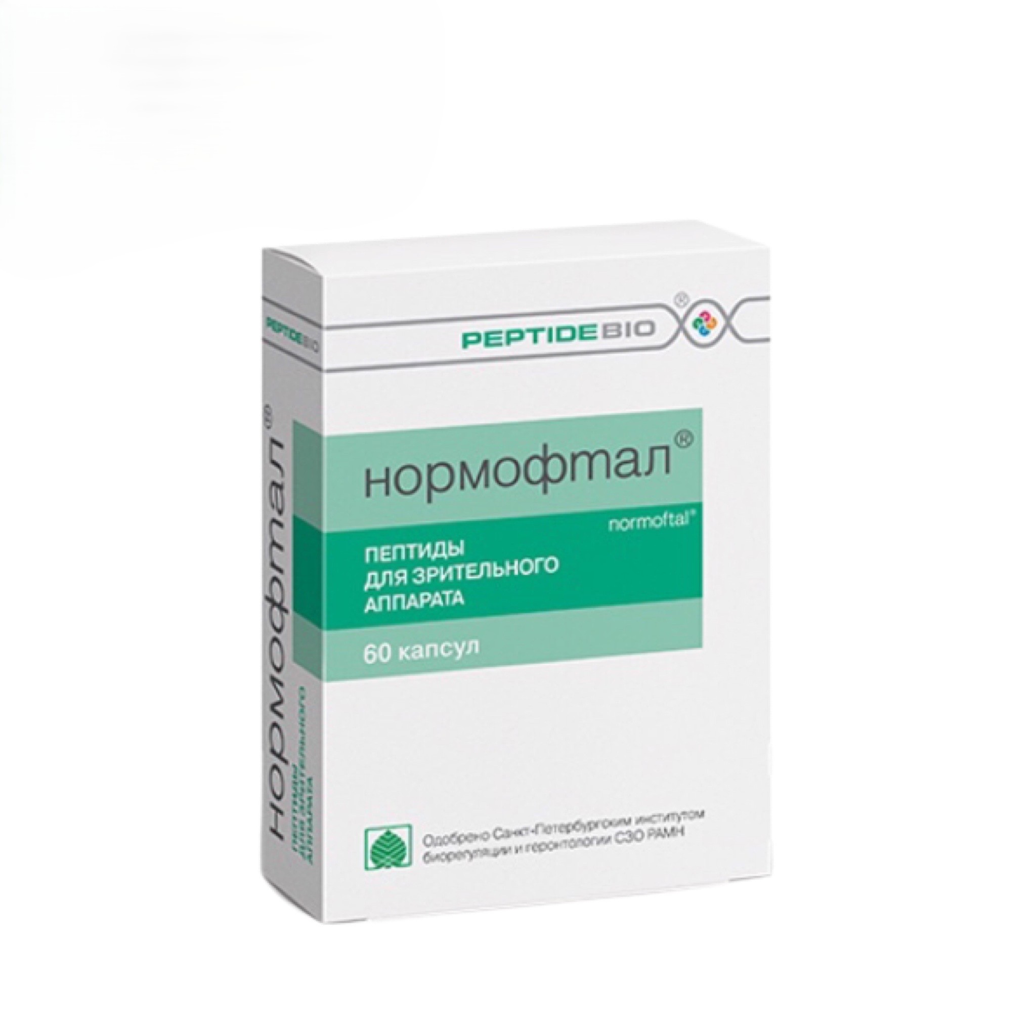 Пептиды Нормофтала моментально включаются в процессы клеточного восстановления зрительного аппарата. Такие особенности всасывания и регулирования работы органов доступны только нано-веществам, к которым относится пептидный комплекс АКС-Г. Этот пептидный биорегулятор также используется и в комплексной терапии последствий инсульта, так как пептидный комплекс АКС-Г предназначен для регуляции процессов в зрительном аппарате и нервной системе. Регуляторные пептиды препарата Нормофтал - это аминокислоты, синтезированные из растительных экстрактов и спиртовых фракций, соединенные пептидной связью. То есть не животного происхождения, что допускает использование препарата вегетарианцами и мусульманами. Пептиды для глаз Нормофтал - уже более 10 лет являются наиболее современным и эффективным средством, применяющимся в комплексной терапии и профилактике глазных заболеваний. Он прошел клинические испытания, что прямо указано в инструкции по применению Нормофтала, и доказал свою эффективность в инициации и поддержании восстановительных процессов в сетчатке глаза. Нормофтал не вызывает аллергии и привыкания, не имеет никаких побочных реакций. Действие стимулируют работу клеток сетчатки и фоторецепторов предотвращают морфологические изменения в сетчатке улучшают общее состояние и работу зрительного аппарата провоцируют восстановительные процессы и обновление клеток роговицы и сетчатки стимулируют иммунную защиту и предотвращают возникновение глазных заболеваний возрастного характера защищают глаза от перенапряжения Рекомендован нормализация функций зрительного анализатора снятие спазма аккомодации начальные стадии глаукомы и катаракты ангиопатии сетчатки на фоне диабета и гипертонии сужение полей зрения дегенерация и отслойка сетчатки атрофия зрительного нерва воспаление роговицы после травм химический ожог органов зрения в качестве иммуностимулирующего фактора при инфекционных поражениях глаз.