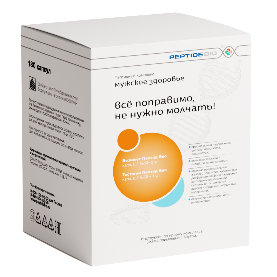 Набор Peptide Bio "МУЖСКОЕ ЗДОРОВЬЕ" включает два вида пептидных биорегуляторов, разработанных на основе пептидов Хавинсона: