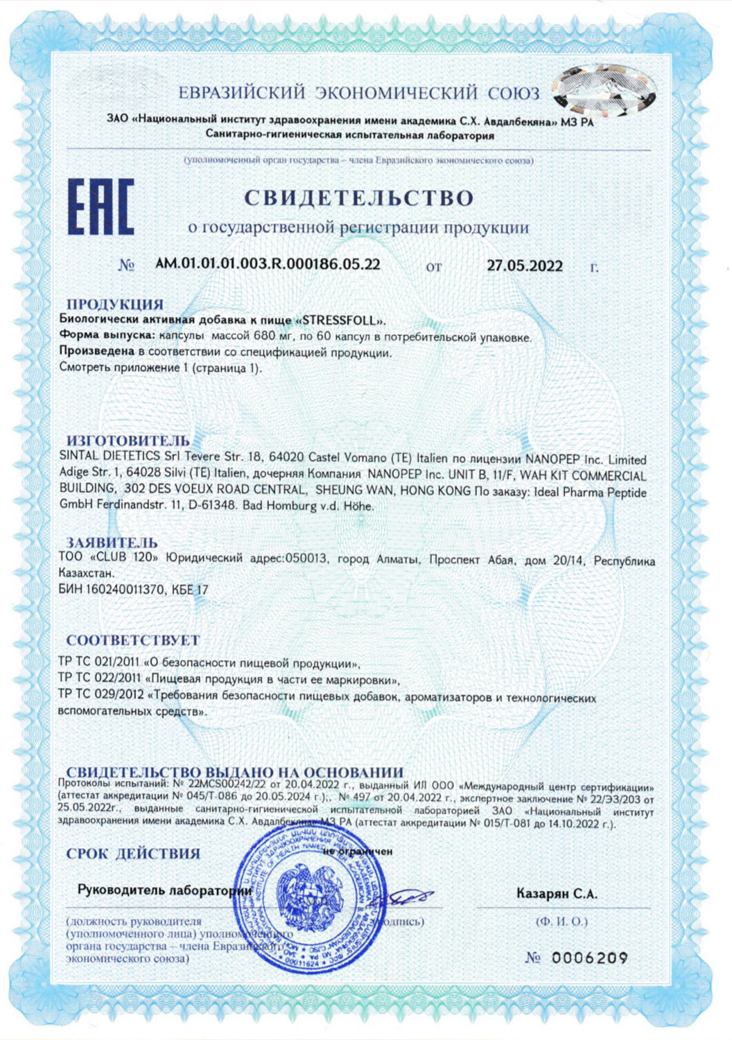 Клинические исследования: В клиническом изучении установлена эффективность применения пептидного биорегулятора Stressfoll® при комплексном восстановлении нейроэндокринной регуляции после перенесенных заболеваний различного генеза, в том числе при патологическом течении климактерического периода, у онкологических больных после лучевой и химиотерапии, при воздействии экстремальных факторов внешней среды, неполноценном питании, а также при старении для нормализации уровня секреции мелатонина.