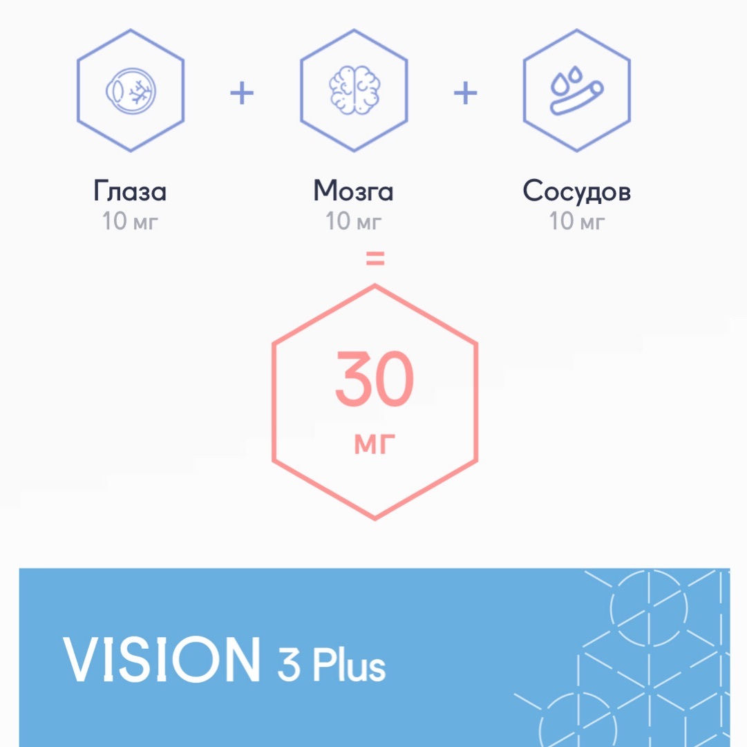 Пептидный комплекс Vision 3 Plus (Вижен 3 Плюс) предназначен для поддержания и восстановления здоровья глаз, а также связанных с ними систем — сосудов и головного мозга.